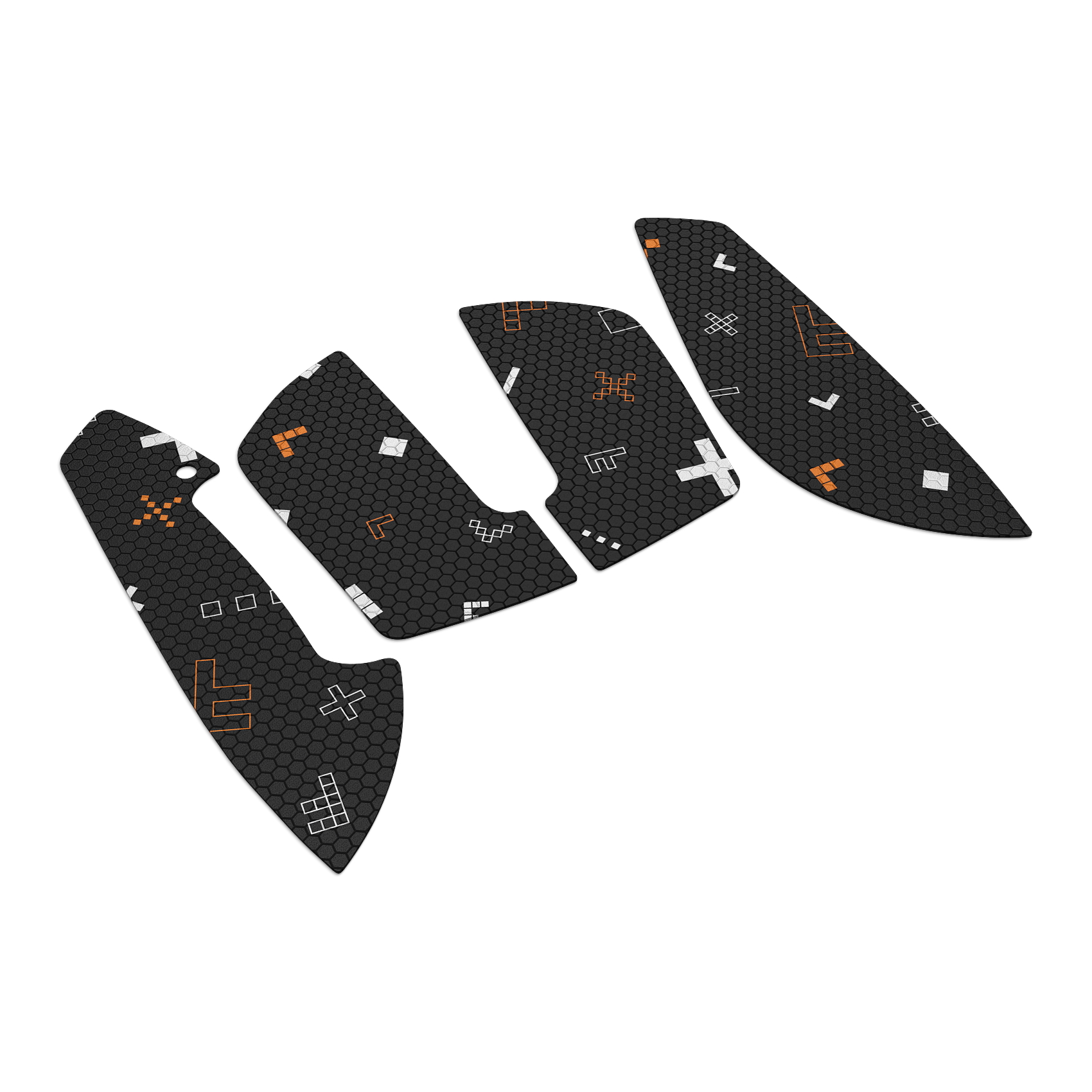 Każdy element zestawu został precyzyjnie zaprojektowany pod kątem kształtu i rozmiaru paneli twojej myszy. Taśmy są strategicznie rozmieszczone w kluczowych punktach kontaktu, zapewniając maksymalną niezawodność i wygodę użytkowania.