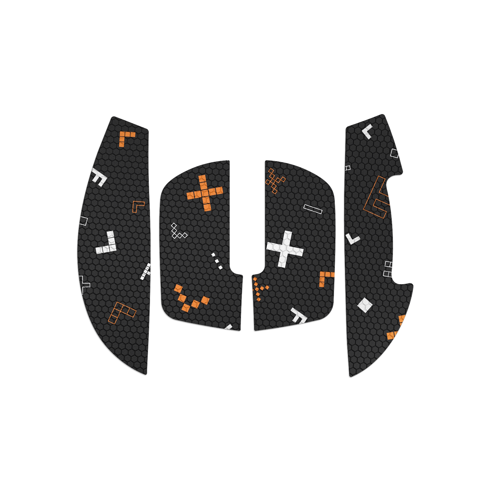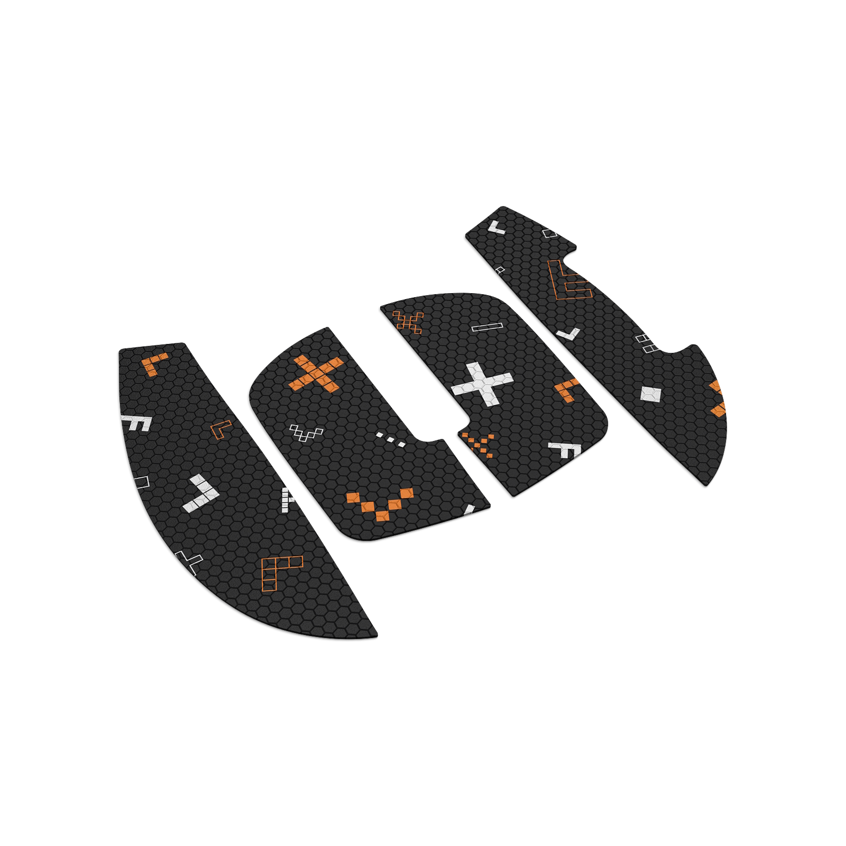 Каждый элемент набора тщательно подобран по форме и размеру, чтобы идеально соответствовать панелям вашей мыши. Ленты расположены в местах основного контакта ладони с поверхностью мыши, гарантируя максимальную надежность и удобство использования.